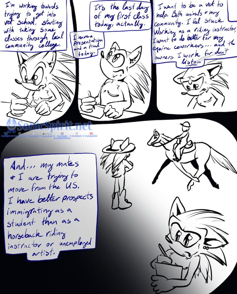 Before 2020 exploded, I'd been working up to really trying to pursue art business through doing cons. I really want to start pursuing doing that again, though with a much more healthy approach then when I was pushing myself so hard in order to try and escape a bad situation. I was gonna try and pivot to arting before I changed jobs to my current stable, but that was more thinking about conventional (heh) art fairs and stuff. But...I could focus on furry cons...! And do it in addition to my day job as a riding instructor.